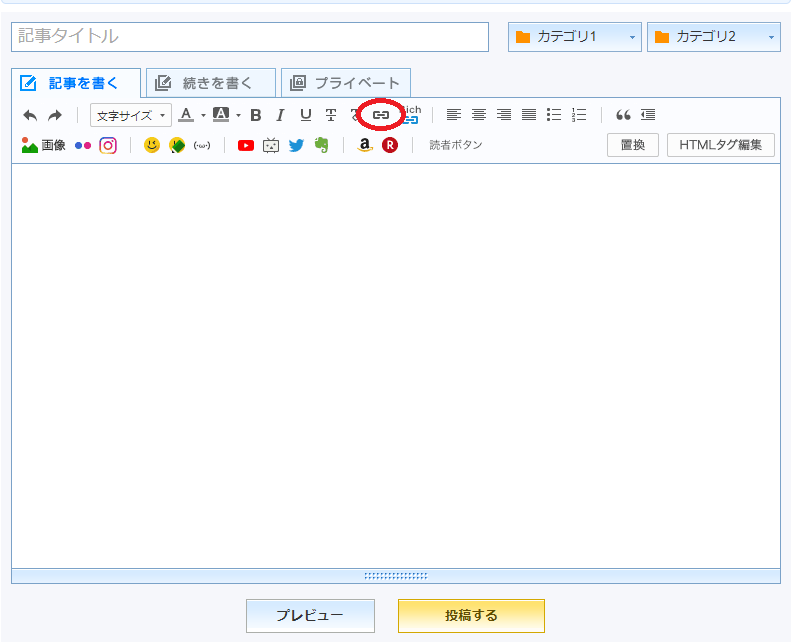 5.リンク先のフレーズを範囲指定して、リンクを張ります。リンクのボタンを押してください。下記