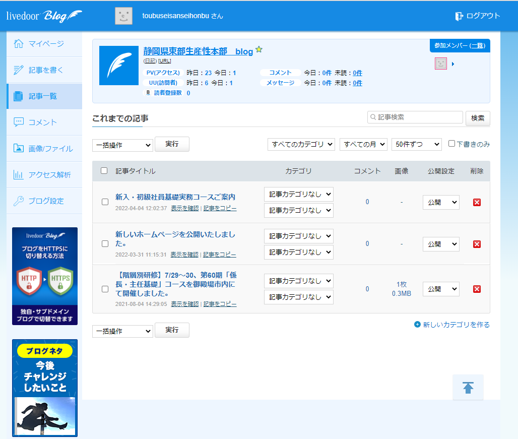 3.編集した場合は記事のタイトルを押せば編集する事ができます。